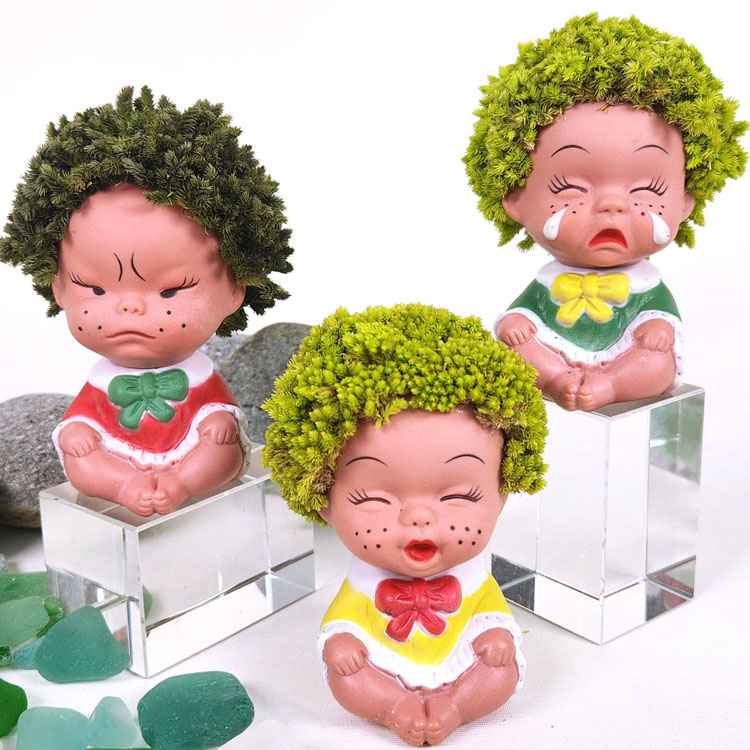 보존이끼를 활용한 친환경적인 공예품 제작 기존의 머리를 제거 후 보존이끼로 꾸며 새로운 추억을 담은 인형
